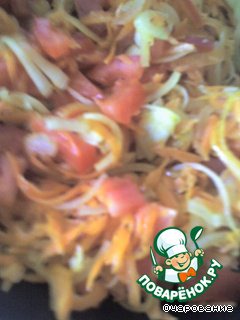 добавляем воды, томат-пасту, уксус, соль, сахар и тушим.
