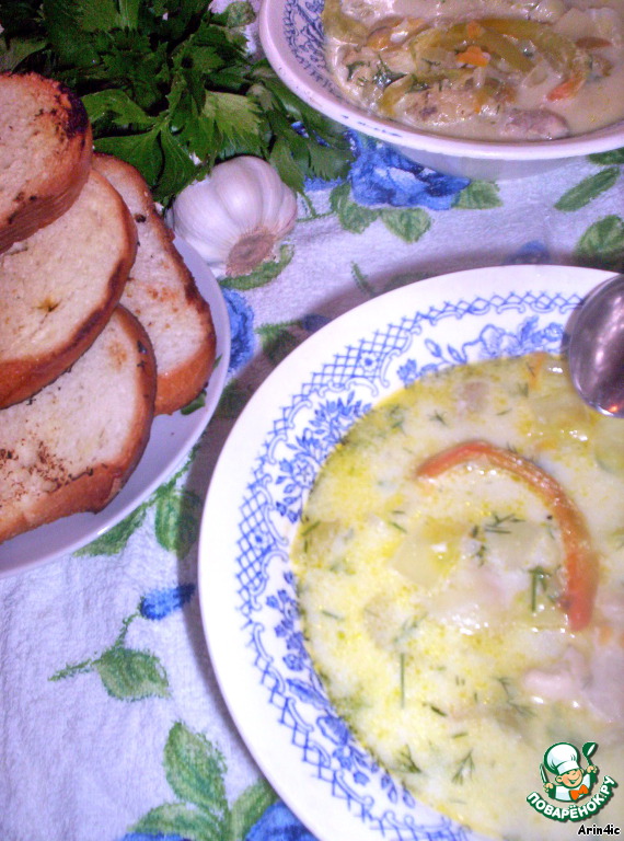 | Щами никого не удивишь. Однако, этот рецепт, увиденный мною в интернете, перевернул мои представления о приготовлении этого супа. Обычно, я делаю все с точностью до наоборот... Но, в результате, мы кушали очень нежный ароматный супчик. Тарелка теплого супа и чесночная гренка. Что может лучше насытить и согреть в промозглый осенний день?! |