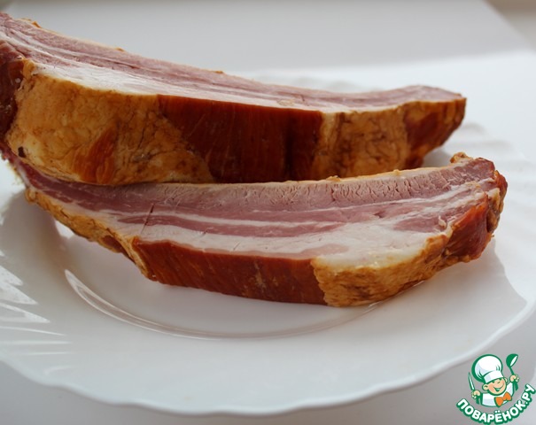 Приготовить копченые свиные ребрышки. Хочу заметить, что как постный вариант можно варить такие щи и без мяса, что я порой и делаю, но зимой предпочитаю готовить наваристые щи.