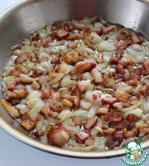 На сковороде вытопить жир, добавить нарезанный лук, обжарить.