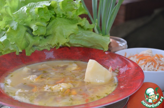 | Эти щи меня научила готовить подруга когда-то совсем давно, когда "деревья были большими", а моя дочка - маленькой. И очень она любила у меня рыбу, а я рыбу не любила и совсем не умела ее готовить. С тех пор эти щи готовлю очень часто - с рыбой, без нее, с фасолью, без фасоли, с мясом и так далее. Неизменным остается только квашеная капуста и картофель. Приглашаю Вас отведать мои щи и надеюсь, что и у Вашей семьи это блюдо станет одним из любимых блюд на каждый день. |