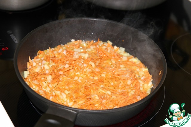 Морковь натереть на терке, лук порубить, спассеровать на растительном масле.