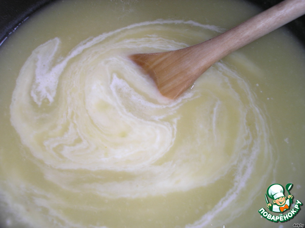 Добавьте 1 л куриного бульона (я делала с овощным) и 1 стакан воды. Доведите суп до кипения, уменьшите огонь и варите 20 минут, пока картофель не станет мягким.
