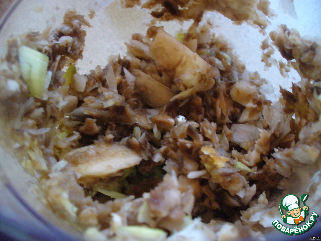 Далее, следуя исходному рецепту, нам нужно перемолоть грибы и лук в блендере... У меня это категорически не получилось... Совсем... Более-менее помог измельчитель... Может, у кого и получится измельчить лучше, чем у меня... В итоге, нам нужно получить равномерно измельченную (как можно мельче) луково-грибную массу. Если не лень, можно пропустить через мясорубку. Но, быстрее и легче оставить, так как получилось, т.к. в итоге все равно придется взбить суп в блендере, чтобы получить консистенцию именно крем-супа.