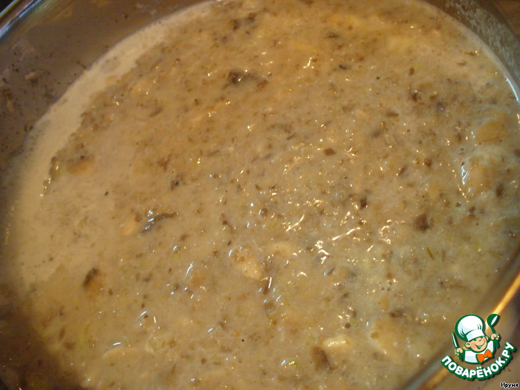 На этом предполагалось закончить приготовление. Но, так как у меня грибы и лук были измельчены плохо, суп совсем не напоминал желаемую консистенцию крем-супа - попадались разнокалиберные кусочки грибов и лука.