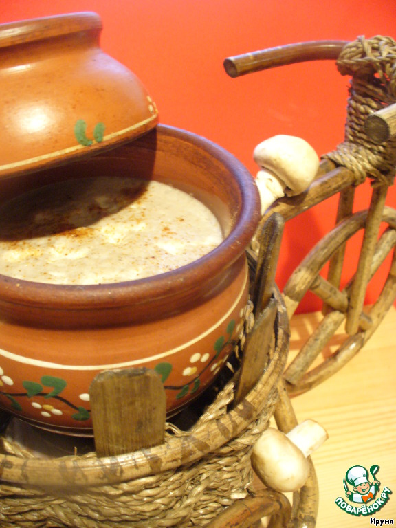| Вариант сливочного крем-супа из шампиньонов. Рецепт этого блюда был размещен на сайте в 2008 году пользователем Lill под названием "Крем-суп из белых грибов" и иллюстрирован мной в рамках акции "Раскраски". |