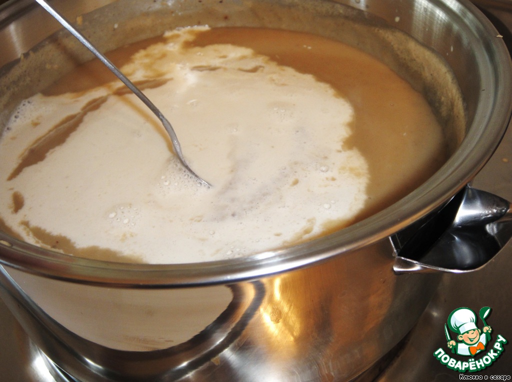 Согласно первоисточнику, дальнейшие действия рекомендуется проводить в посуде на водяной бане. Привожу выдержку из книги.