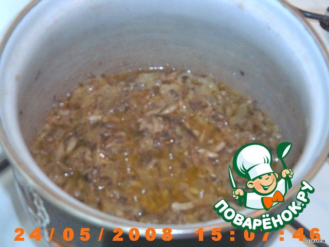 Нарезать мелко лук, грибы через терку.