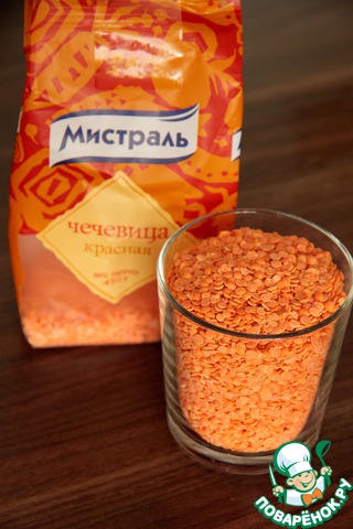 Стакан чечевицы промоем и зальем 2-мя стаканами куриного бульона. Поставим на плиту и дадим провариться 7 минут.