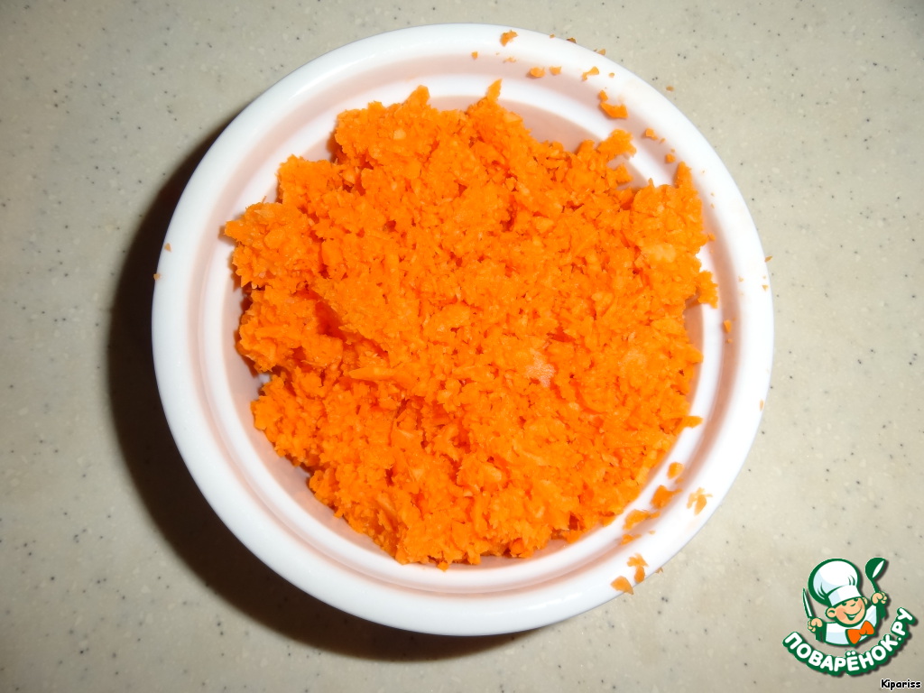Дальше измельчаем морковь.
