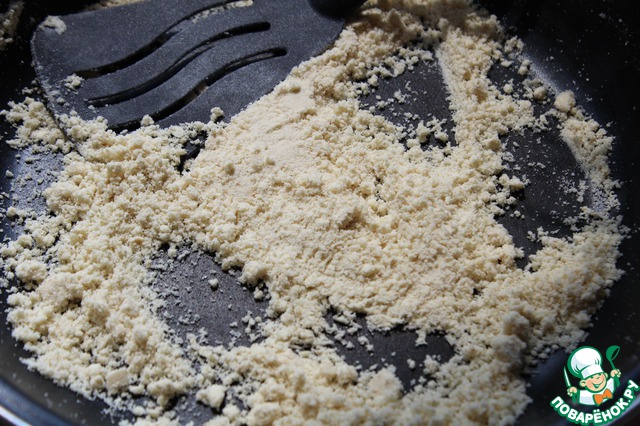 Для его приготовления обжариваю муку на 1 ст. л. сливочного масла при постоянном помешивании, не давая муке резко изменить цвет.