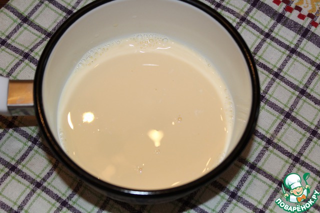 для приготовления льезона разбалтываю вилкой желток и заливаю 100 мл горячего, но не кипящего молока и прогреваю до загустения.