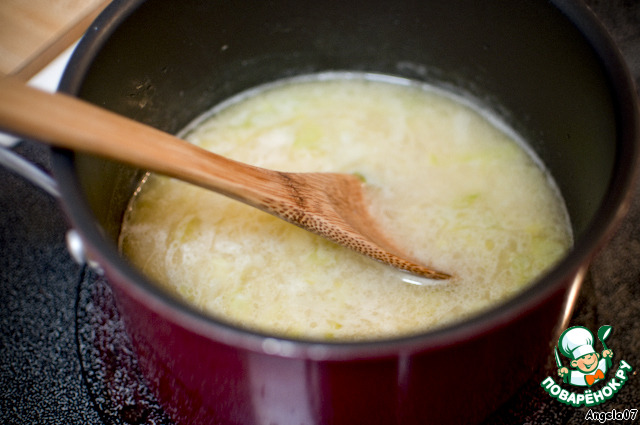 Влить бульон и поварить пару минут,