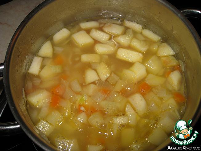Добавить яблоко и картофель и потомить еще 5 минут.