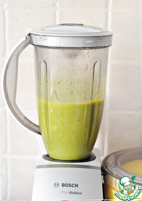 Содержимое сотейника перелить в блендер и измельчить до состояния пюре.