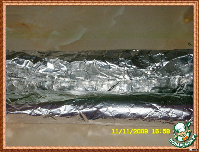 завернуть в фольгу, запечь в духовке в течении 8-10 минут. Охладить, чтобы сыр "схватился",