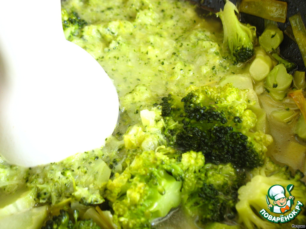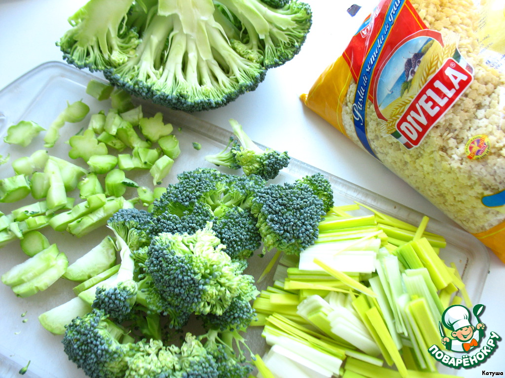 Брокколи режем вместе с кочерыжкой! Лук-порей (можно и простой репчатый) произвольно.