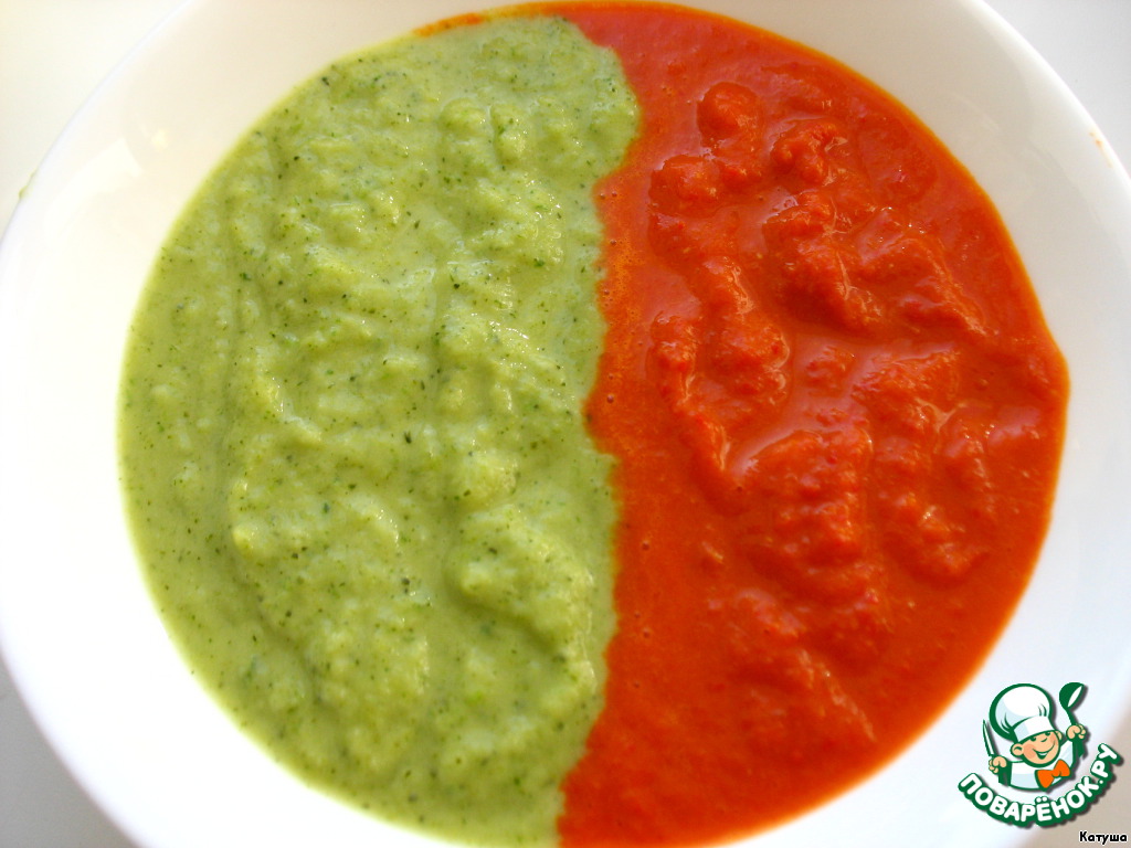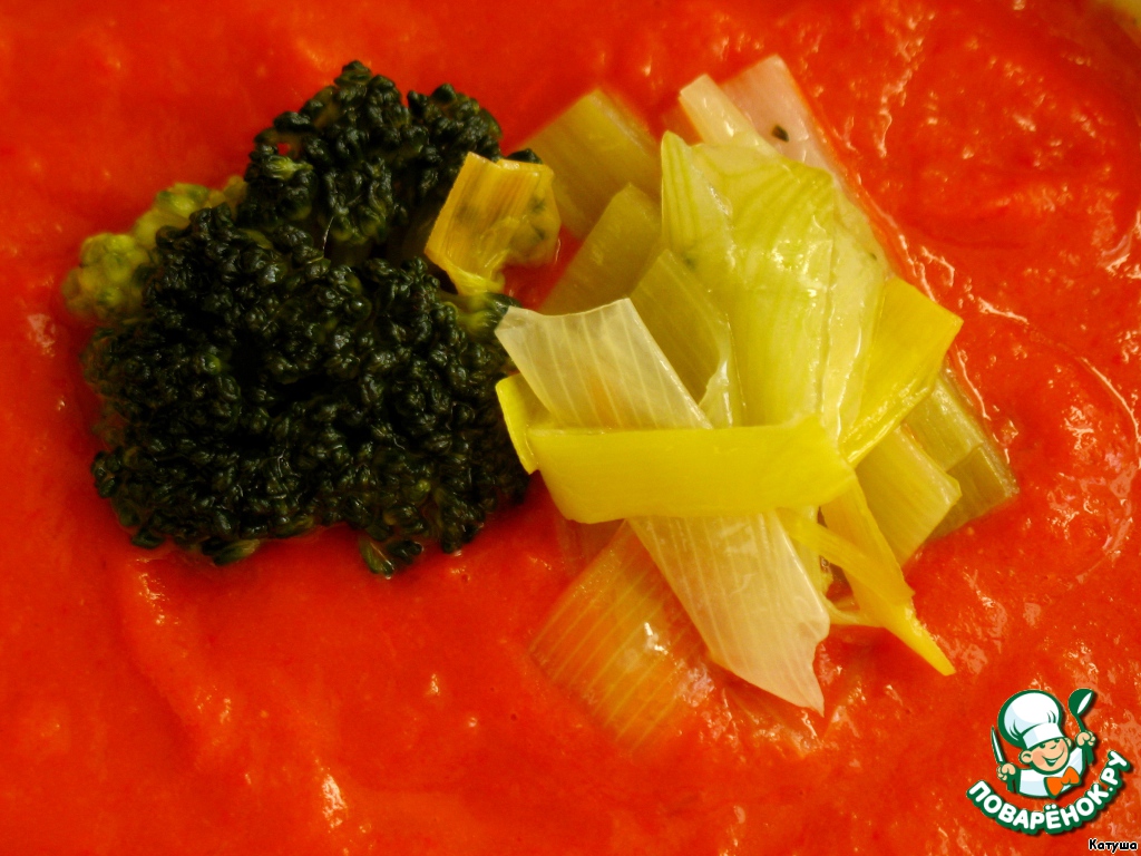 Итак, суп из брокколи готов - солим, добавляем отвар от пасты (200 мл), пюрируем блендером и прогреваем на медленном огне. А можно этот суп оставить в целом виде и просто добавить его в томатный. Ещё о зелёном супе - он имеет необыкновенный сливочный вкус, что не может не радовать в пост.