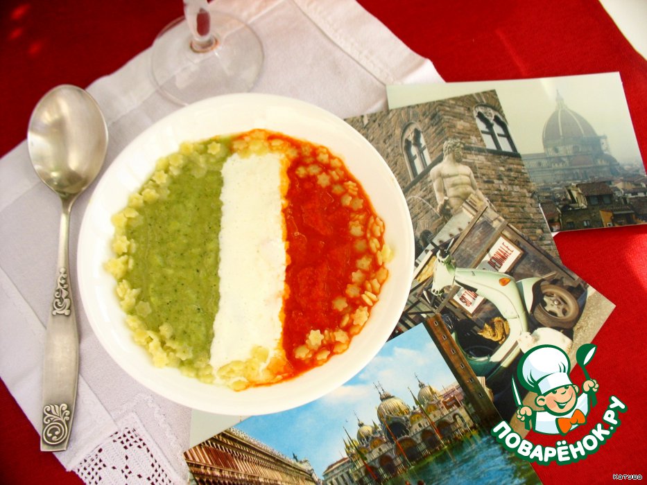 | Zuppa di broccoli е pomodoro. Сегодня у нас в меню классический итальянский суп вот в такой подаче. Я часто на семейные праздники подаю суп, оказалось, гости их ждут с нетерпением, потому-то, как тоже оказалось, многие хозяйки считают приготовление супа делом долгим и сложным. Это не так! Процесс очень простой, а вот вкус получается богатый, насыщенный, но от слов к делу - идем на кухню. |