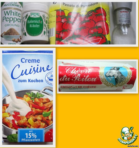 Вот такие сливки, томатное пюре, специи и сыр я использовала.