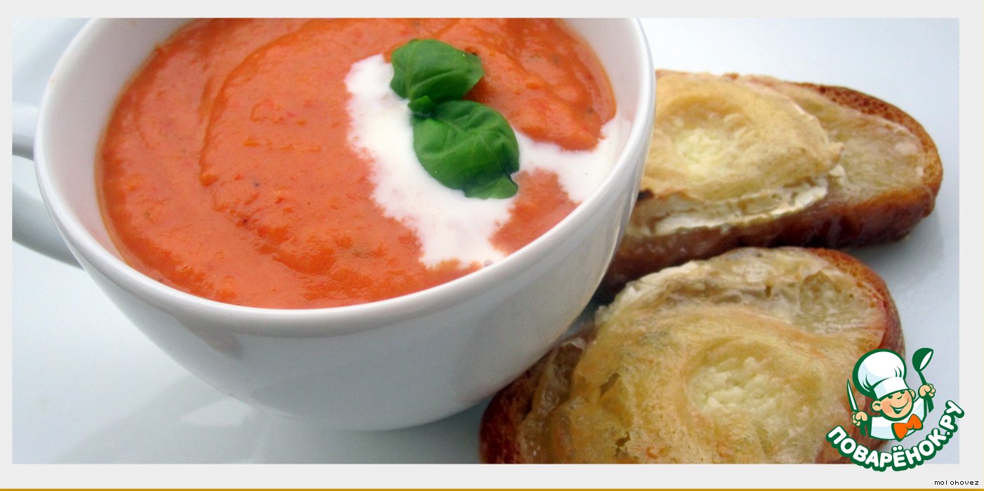 Украсить листочком базилика и сливками. Подавать с тостами.