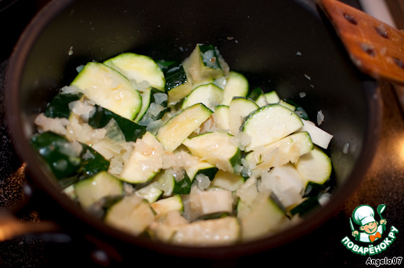 Добавить цуккини к луку и потушить несколько минут.