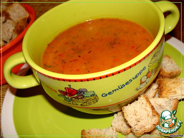 | 12 страниц разнообразных супов-пюре на "Поваренке", но только один рецепт - из сладкого перца... но без фото... но с другим составом... А ведь это так вкусно! Попробуйте! |