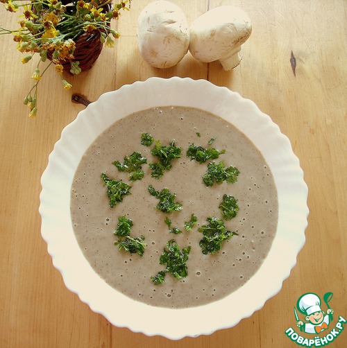 | Привет всем! Я сегодня с нежнейшим крем-супом. Насыщенный грибной вкус, бархатная структура, освежающее дополнение соусом из петрушки. Трудно устоять, легко приготовить! |