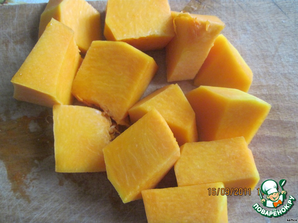 Овощной суп-пюре с тыквой, кабачком и сырно-чесночным омлетом