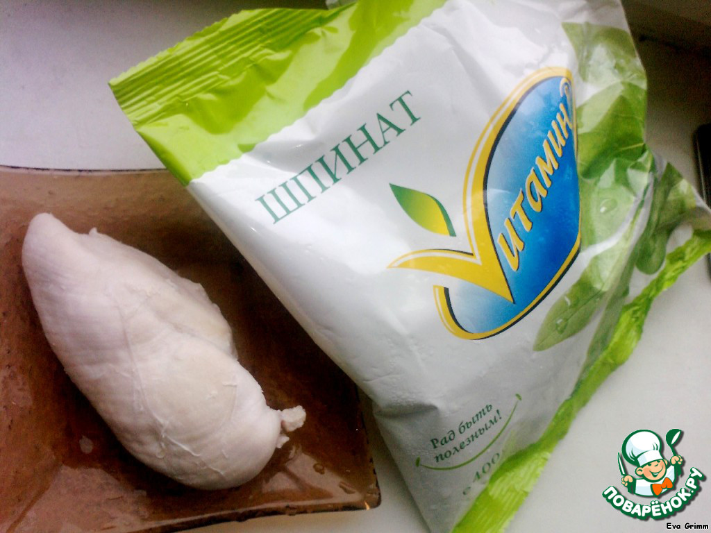 Отварим грудку, достаем и даем немного остыть. В куриный бульон выкладываем шпинат и варим минут 5-10