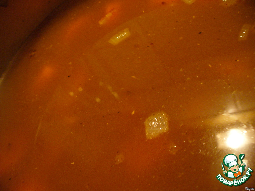 Небольшое отступление. В оригинале рецепта предлагалось взять по 1 ч.л. каждой из этих пряностей... Могу сказать, что когда я первый раз делала этот суп, я так и положила. Я, конечно, очень люблю острое... Но это было просто "вырви глаз"! Я разбавляла бульоном в 2 раза и то, было очень остро! В этот раз я положила по 1/3 ч.л. без горки. По мне было нормально, остро - но так и должно быть. Ориентируйтесь на свой вкус, если не любите острое - кладите специй меньше!