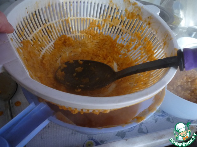 Затем протираем через сито, чтобы суп не был кашей. Часть круп все же можно оставить в супе.