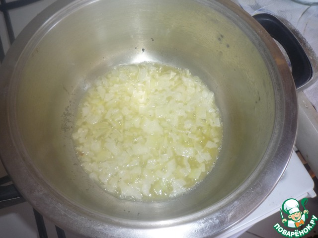 Лук и чеснок измельчить, обжарить в масле до золотистого оттенка.
