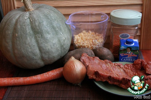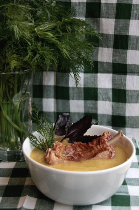 | Зимний этот суп потому, что очень густой и наваристый - в холодную погоду нет ничего лучше горячего сытного супа-пюре. Обычно я варю суп с копченостями только с горохом, но сейчас решила добавить чечевицу и тыкву (когда же она кончится уже!!). Получилось очень вкусно. |