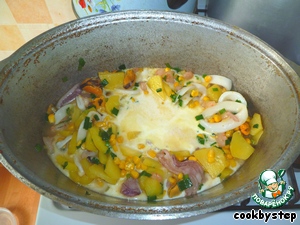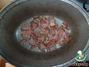 Бекон нарезать и обжарить до корочки в толстостенной кастрюле (у меня утятница).