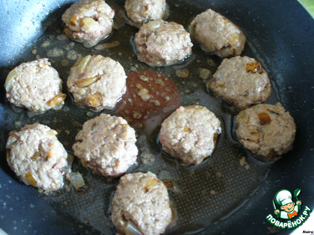 Фрикадельки обжарить на растительном масле на разогретой сковородке до золотистого цвета.
