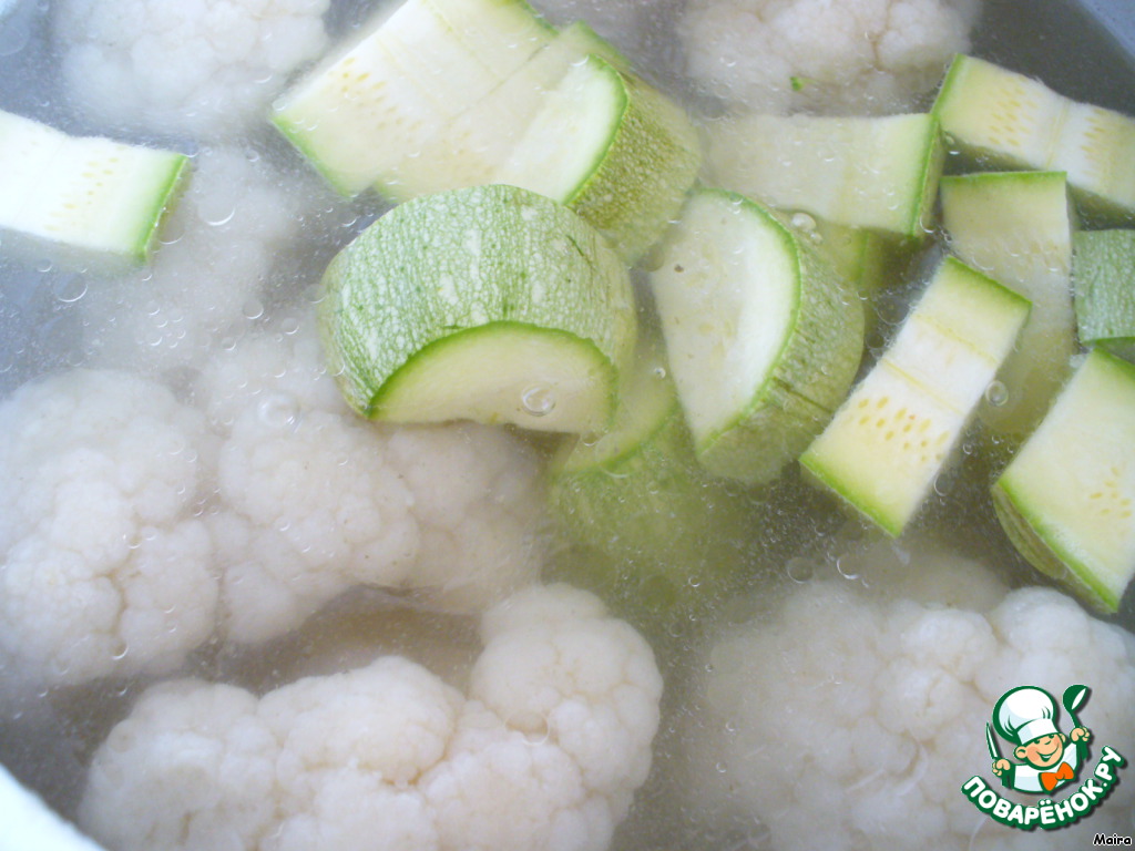 Суп-пюре из цветной капусты и кабачков с фрикадельками