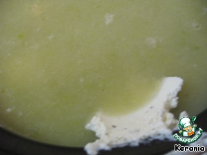 6. Вернуть суп в кастрюлю и добавить творожный сыр. Готовить, пока сыр не расплавится, не доводя до кипения.