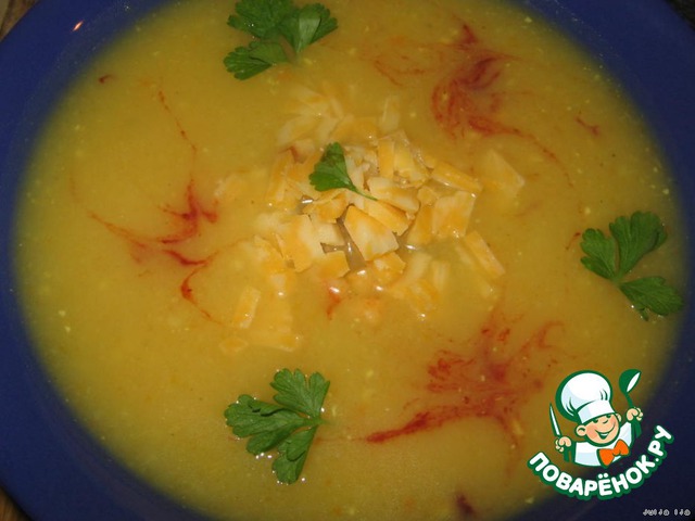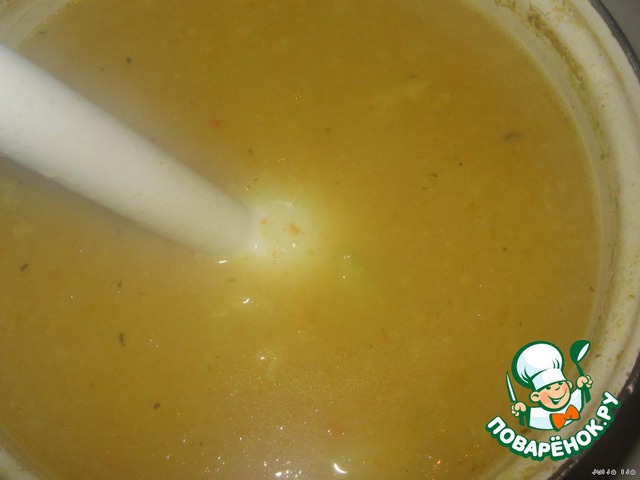 | Овощной, лeгкий, очень быстрый супчик-пюре, с зелeным горошком и сыром. |