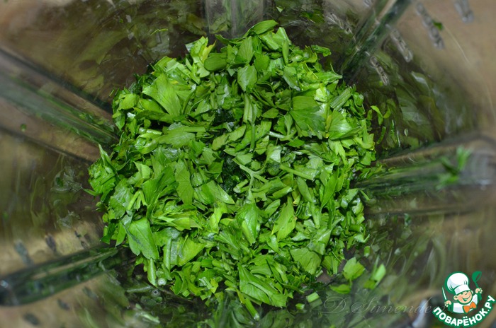 Итак, мелко порубите чистую петрушку и положите в блендер.