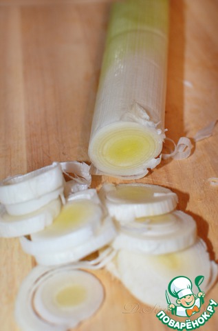 У лука-порея нарежьте белую часть.