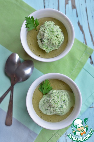 Крем-суп из шпината и порея с мороженым из петрушки