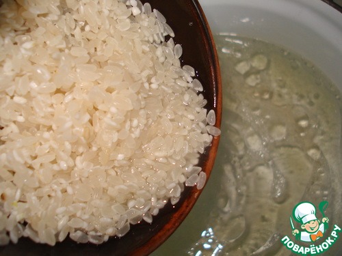 Рис промойте и засыпьте в кипящий бульон. Варите 15 минут.