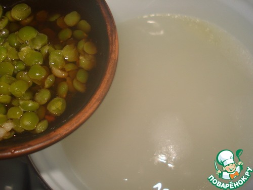 Добавьте заправку из гороха и чеснока, посолите, поперчите. Варите еще 10.