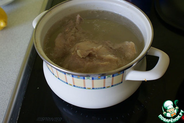 Тем временем, варим бульончик. Либо овощной, либо куриный. У меня куриный.