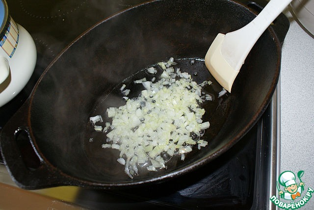 Пассируем его! Можно на сковороде, у меня казан, я в нем сразу все готовлю. Кому как удобнее.