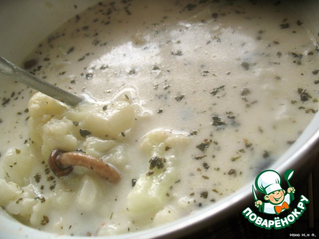 Крем-суп из цветной капусты с грибами и гренками