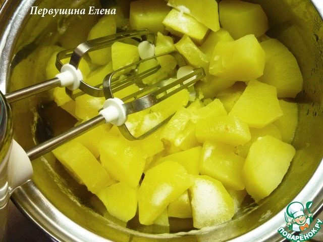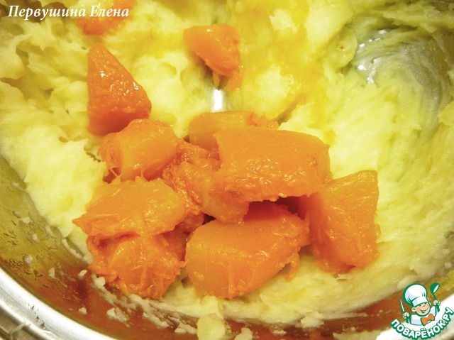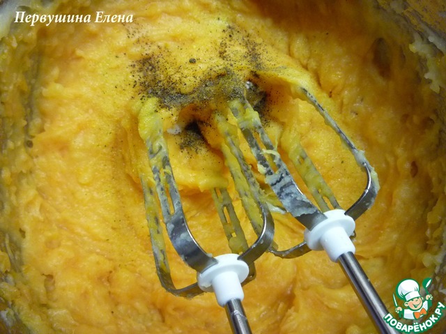 Тыкву очистить, нарезать и сварить. Так же поступить с картофелем.