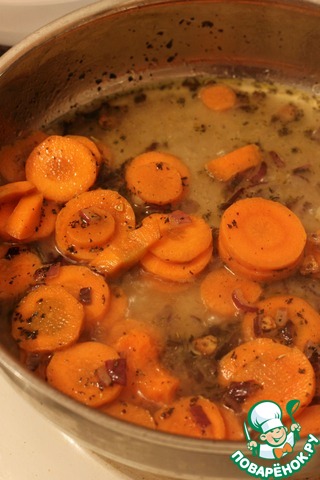 Затем добавить нарезанную кружочками морковь, добавить воды и готовить до мягкости моркови.