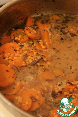 Теперь добавить чечевицу, посолить, поперчить по вкусу.